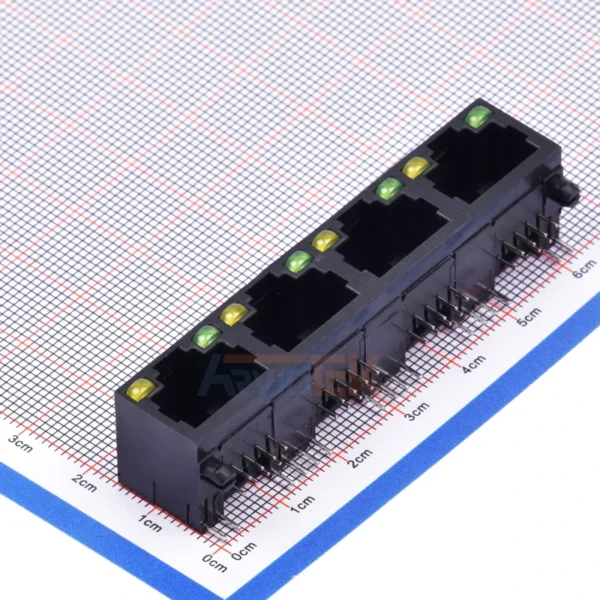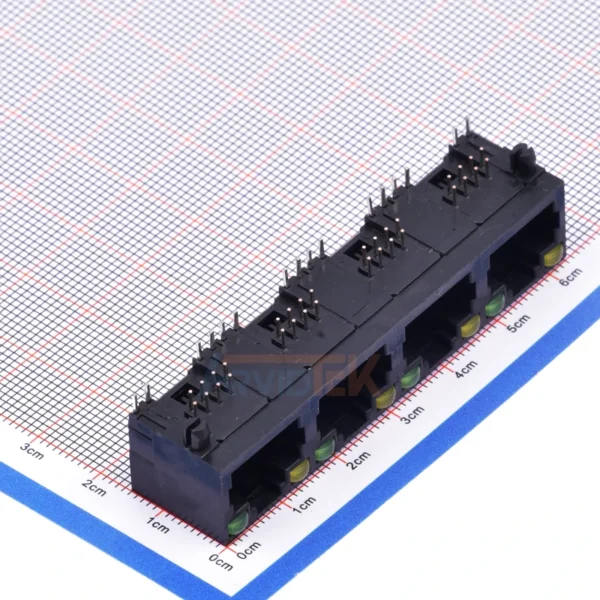 - RJ45Receptacle Unshielded 4 Bend-in Gold Phosphor Bronze WithLED Plugin Ethernet Connectors / Modular Connectors (RJ45 RJ11) ROHS